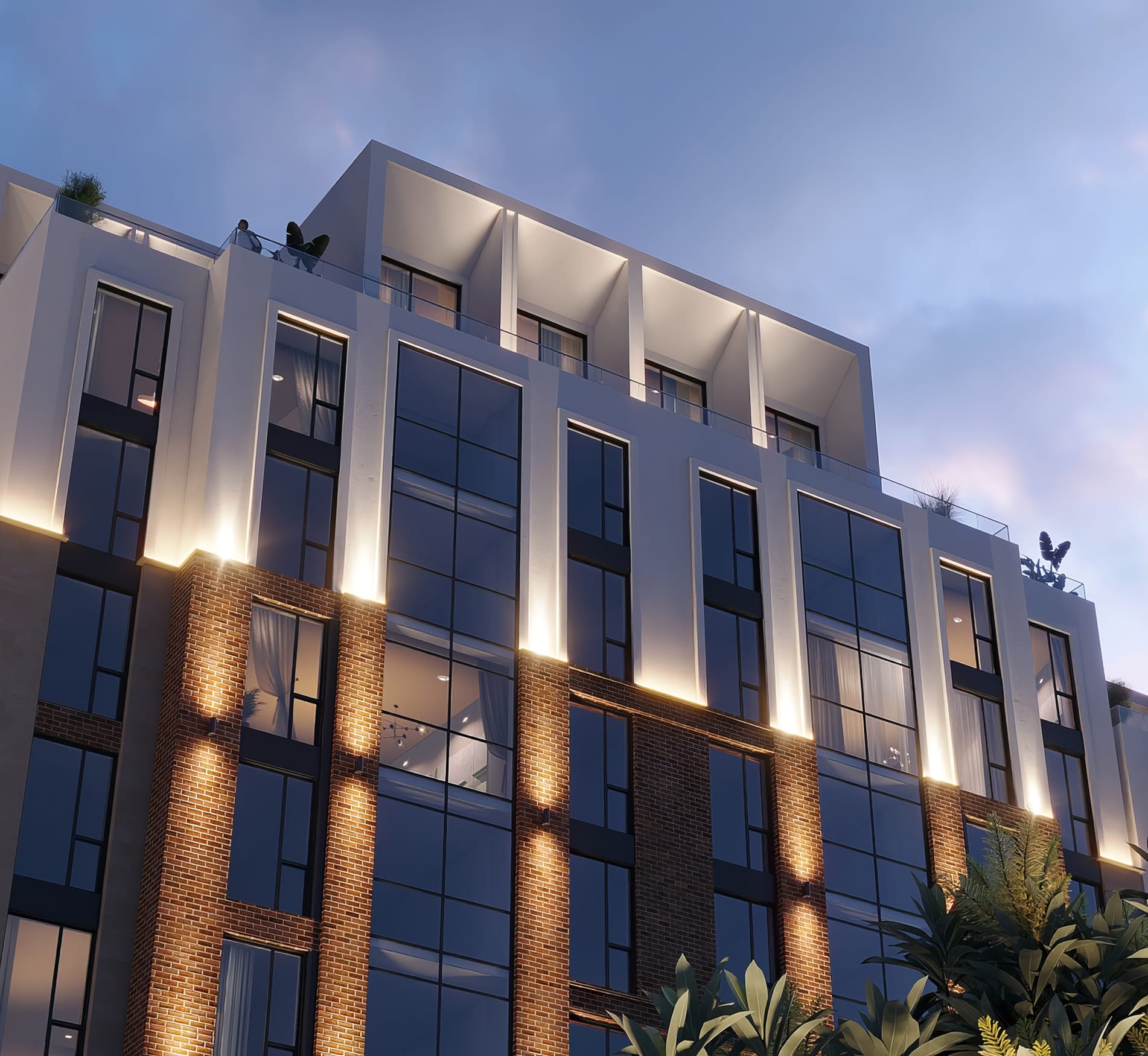 На верхних уровнях расположены пентхаусы с террасами